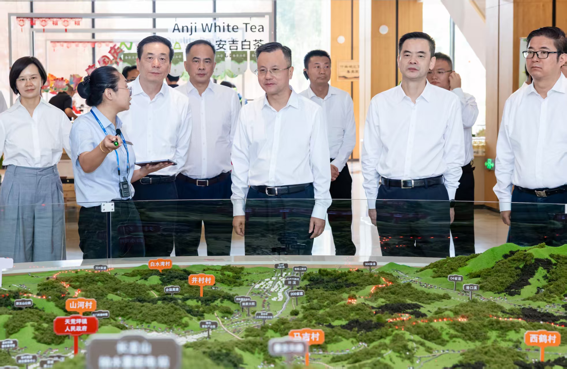 吴群刚一行在湖州市安吉县天荒坪镇余村考察学习。莫贯/摄影