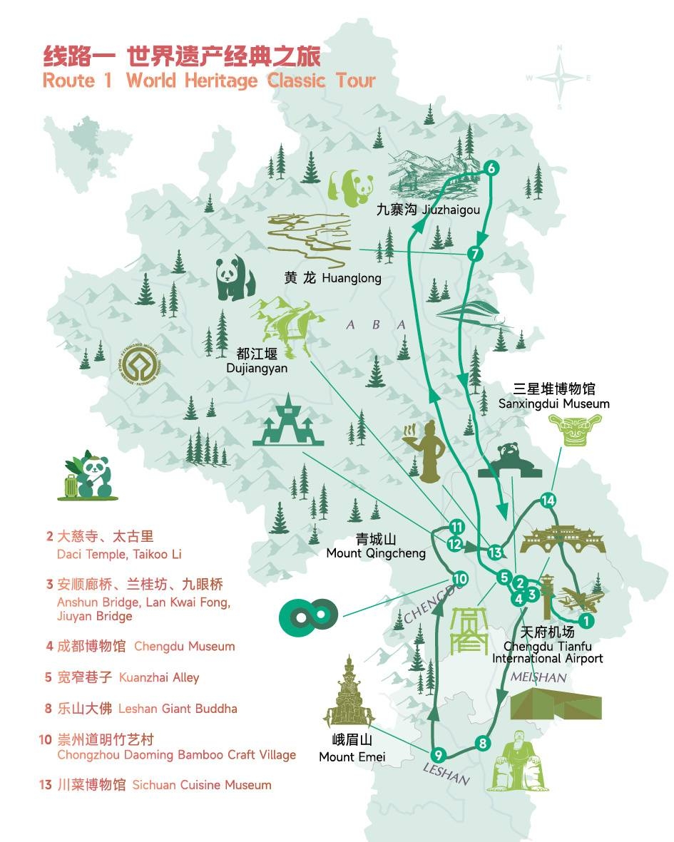 与此同时,四川整合自然和文化遗产、大熊猫、冰雪温泉、阳光康养等优势旅游资源,推出10条“跟着世运会游四川”入境游精品线路,热忱欢迎八方宾客,品多彩人文之韵,赏自然生态之美,享安逸生活之乐。