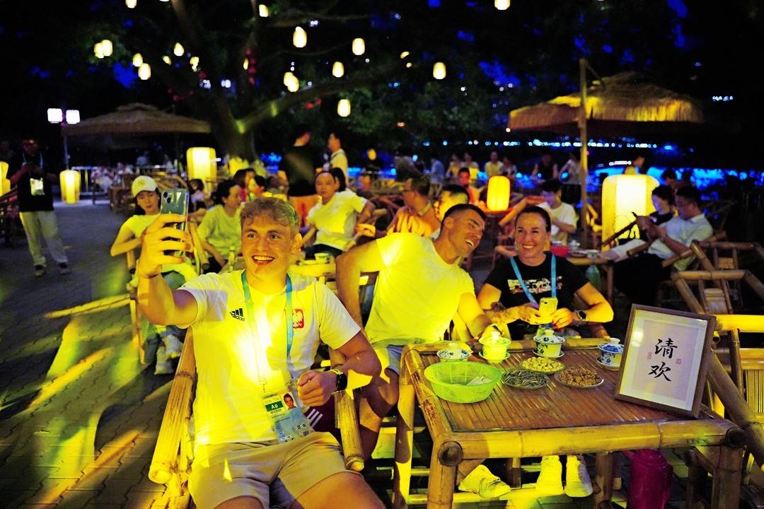 8月6日晚,几名成都世运会运动员、教练员与裁判员登上火锅巴士,解锁“吃着火锅,看烟火成都”新体验。来自荷兰的体操技巧评判员鲁道夫一边涮着肥牛,一边举着手机记录车外的夜景,“这种感觉太奇妙了!” 尝了一口红糖糍粑后,更是让他感慨:“成都就像这道甜点,热情里藏着温柔。”